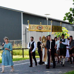 Erstkommunion, Firmung, Fronleichnam erhalten durch die An­wesenheit und Mit­wirkung von Vereinen besonderen Feier-Status: Da spielt dann die Marktmusik­kapelle am Kirch­platz auf, da werden in der Agape Brot und Wein gereicht, da beginnen die Kinder in der Park­anlage um den Pfarrhof zu spielen. – Schade nur, dass der Herr Pfarrer sich dem fröh­lichen Feiern bald ent­ziehen muss, weil er zur Sonntags­messe in die nächste Pfarr­verbands­pfarrkirche gerufen wird.